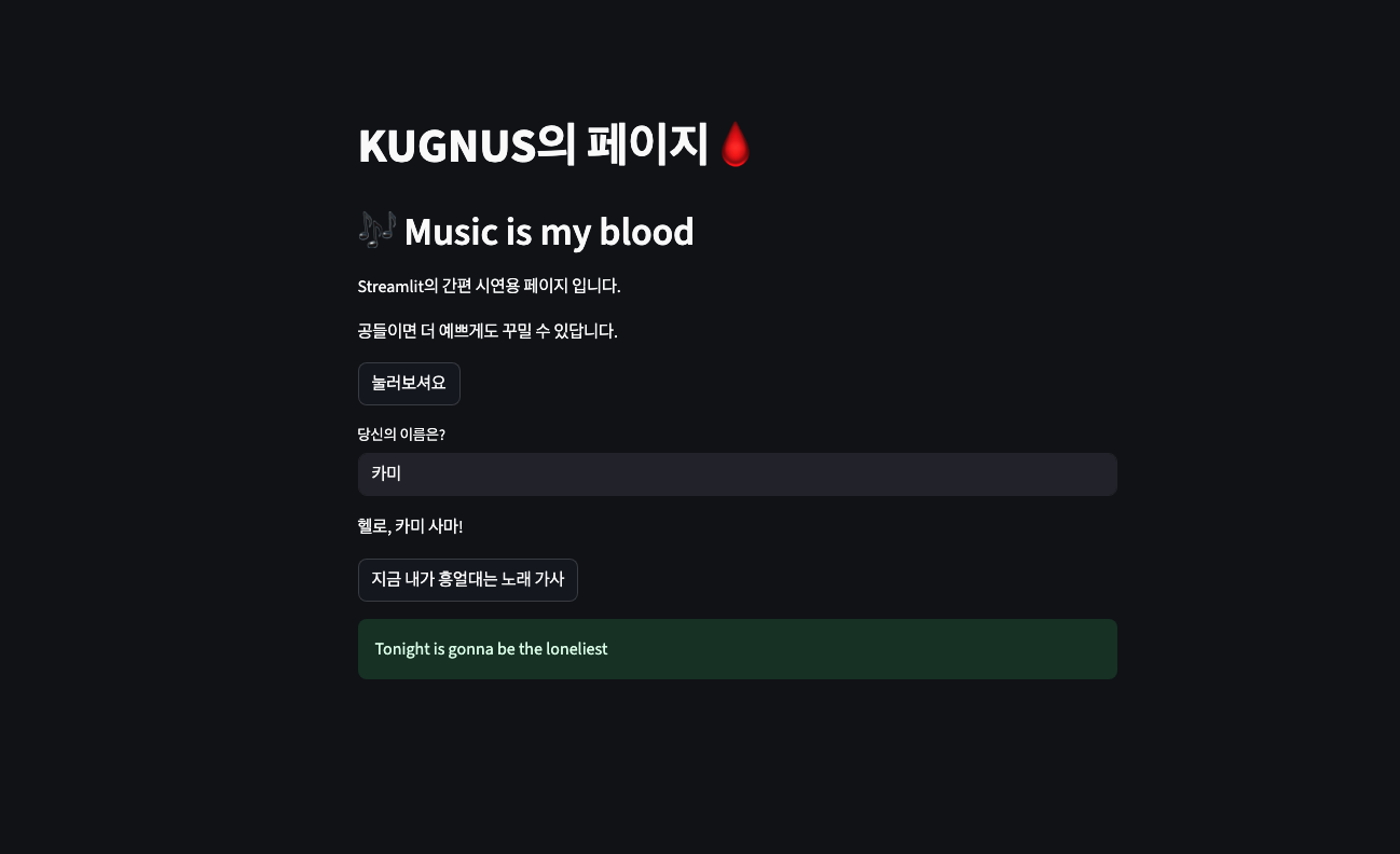 st.title("KUGNUS의 페이지🩸")